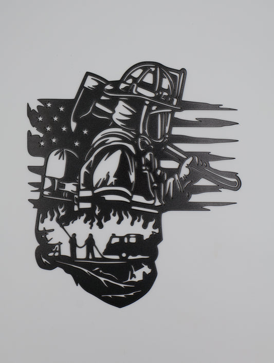 Fire Fighter In Flag Sign